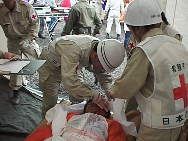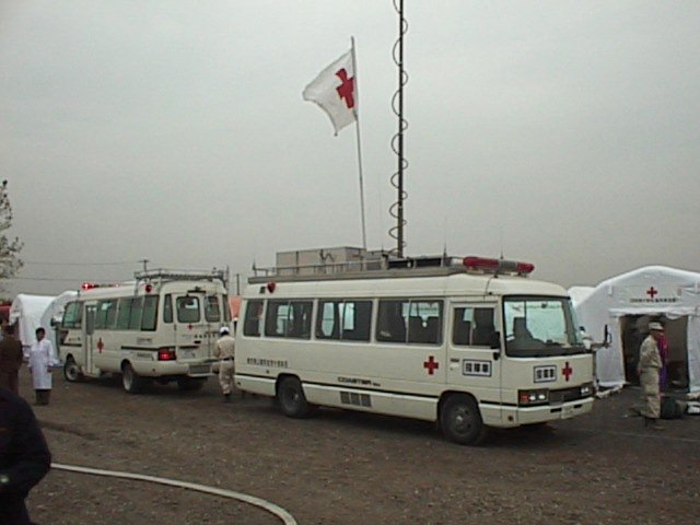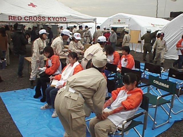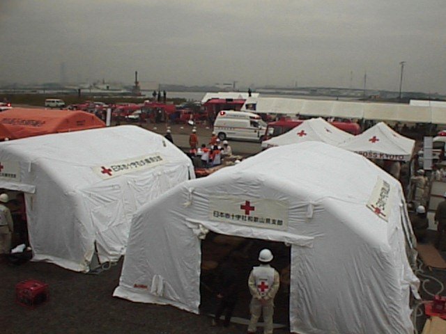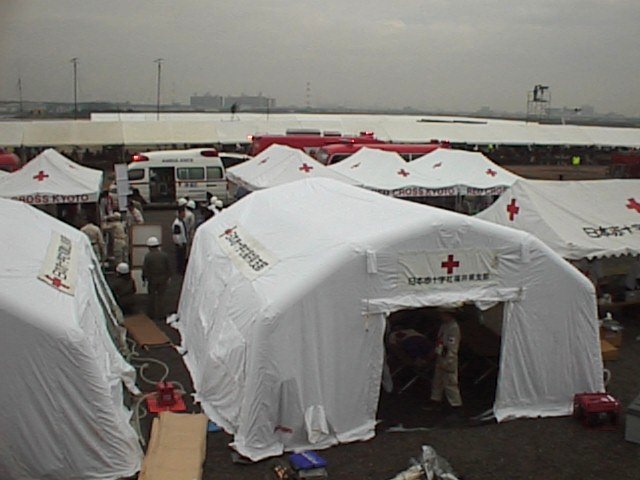 赤十字機関の救護活動 救護所開設。 飛行隊による医薬品空輸。